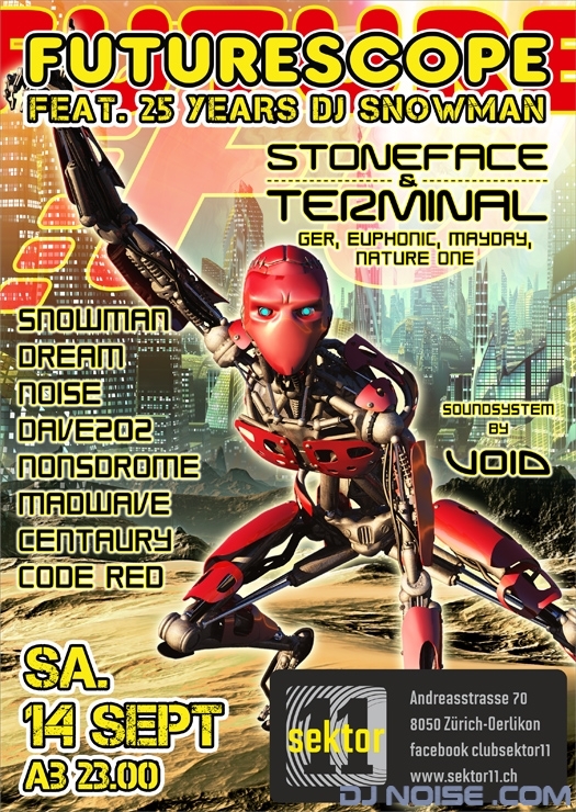 14.09.2013 Futurescope (25Years DJ Snowmwn) at Sektor 11 26 August 2013 Blog 14.09.2013 Futurescope (25 Years DJ Snowman) at Sektor 11 (ZH) Playtime: 23:00 - 00:30 Facebook Party Link Prev Next